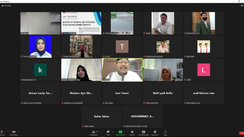 FT UIS – Membahas pelaksanaan teknis Ujian Akhir Semester (UAS) di Fakultas Teknik Universitas Ibnu Sina (FT UIS), Panitia Pelaksana menggelar rapat secara online, Jumat (8/7/2022). Rapat pelaksanaan teknis ini dimaksudkan memaksimalkan persiapan dan meminimalisir kendala-kendala yang pernah terjadi pada