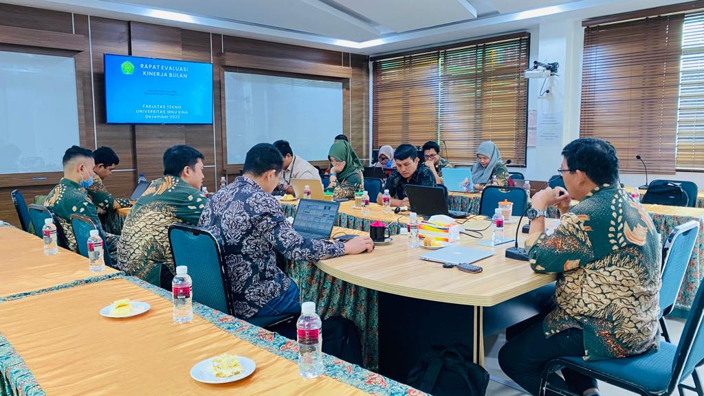 FT UIS – Mengukur capaian pelaksana Program Kerja (PROKER) sebagaimana yang telah direncanakan sebelumnya serta kendala yang dialami, Manajemen Fakultas Teknik Universitas Ibnu Sina (FT UIS) melaksanakan Rapat Evaluasi Kinerja Bulanan di ruang rapat FT pada Kamis (22/12/2022). Dihadiri oleh