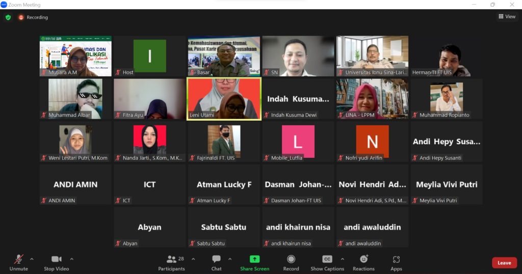 FT UIS – Sebanyak 41 Mahasiswa Fakultas Teknik (FT) Universitas Ibnu Sina (UIS) mengikuti prosesi Yudisium Program Sarjana (S1) yang berlangsung secara virtual melalui aplikasi zoom meeting, Selasa (31/05/2022). Terdapat 18 Mahasiswa dari Program Studi Teknik Informatika yang dikukuhkan dengan
