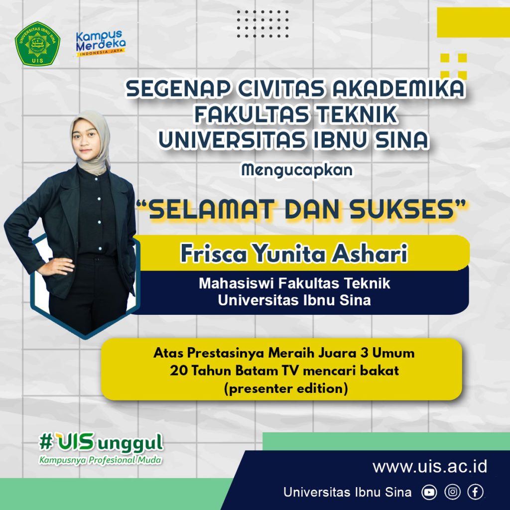 Prestasi membanggakan kembali diraih oleh mahasiswa Fakultas Sains dan Teknologi Universitas Ibnu Sina. Fritalia Afrija, mahasiswa Program Studi Teknik Industri, berhasil meraih Juara III dalam ajang Pemilihan Mahasiswa Berprestasi (Pilmapres) Tingkat Wilayah LLDIKTI XVII Riau dan Kepulauan Riau Tahun 2026