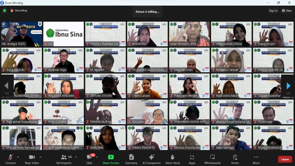 Sebanyak Berikut ini dokumentasi workshop dan tes TOEFL yang dilaksanakan oleh Universitas Ibnu Sina. Kegiatan ini berlangsung dari 17 -26 November 2023. Dokumentasi Kelas A Workshop – SESI I Jumat, 17 November 2023 Lihat Galeri Dokumentasi Kelas A Workshop Sesi