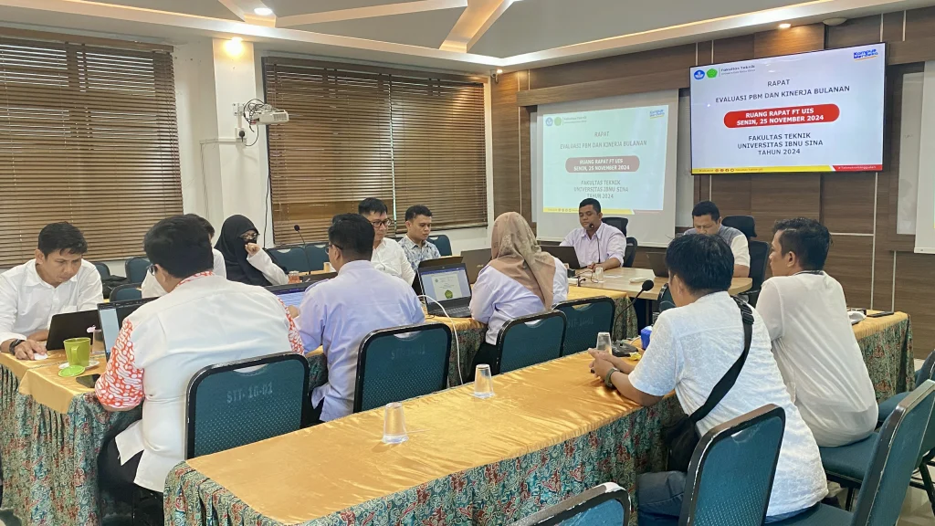 FT UIS, Batam – Fakultas Teknik Universitas Ibnu Sina (FT UIS) menyelenggarakan Rapat Evaluasi Proses Belajar Mengajar (PBM) dan Kinerja Bulanan pada Senin (25/11/2024). Rapat yang dilaksanakan di Ruang Rapat FT UIS ini dipimpin langsung oleh Wakil Dekan I Bidang