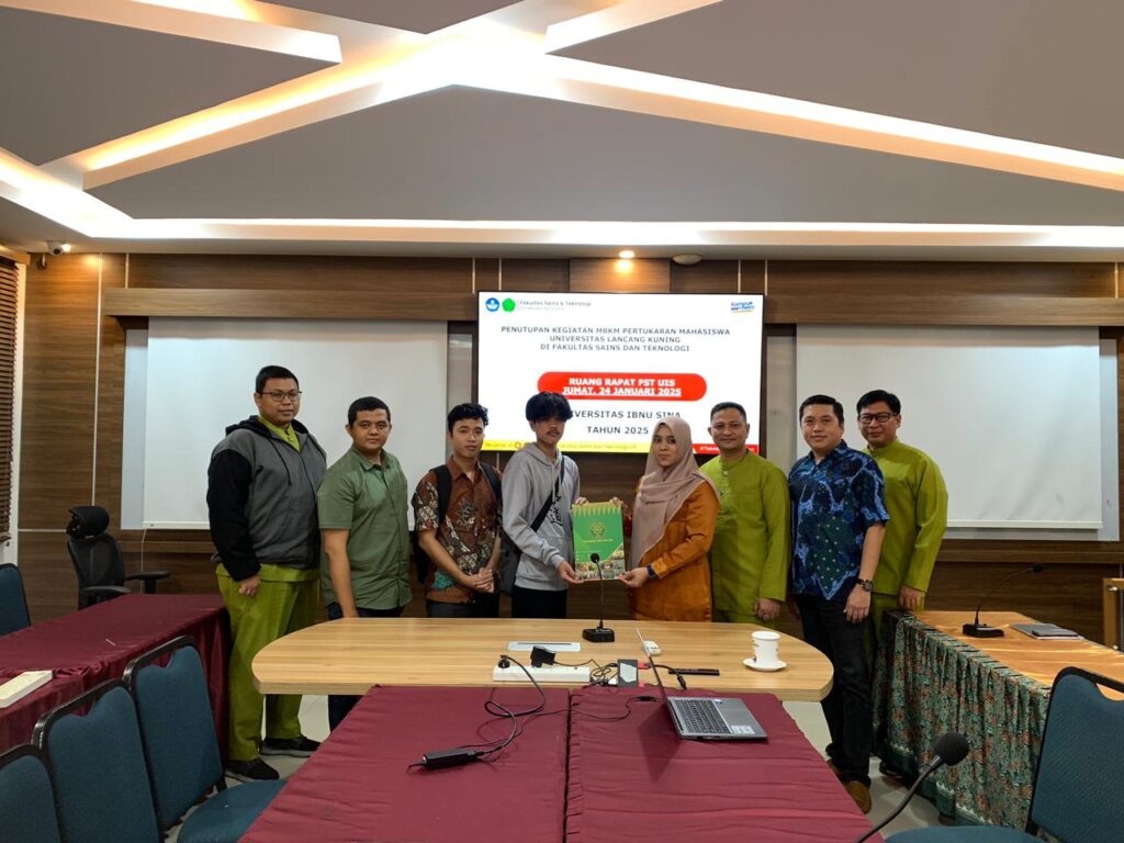 Fakultas Sains dan Teknologi Universitas Ibnu Sina secara resmi menutup kegiatan MBKM Pertukaran Mahasiswa dari Universitas Lancang Kuning pada Jumat, 24 Januari 2025. Kegiatan ini menjadi penanda berakhirnya program pertukaran mahasiswa yang telah berlangsung dengan penuh semangat kolaborasi dan kebersamaan.